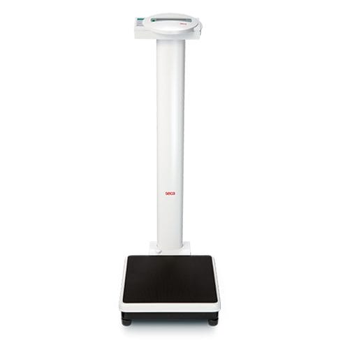 Ausgestattet mit dem optionalen Messstab seca 220 oder seca 224 kann das Wiegen und Messen in einem Arbeitsgang erfolgen.