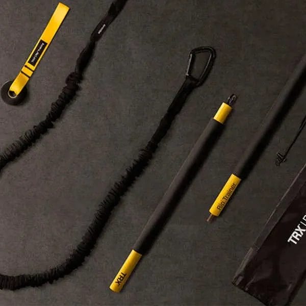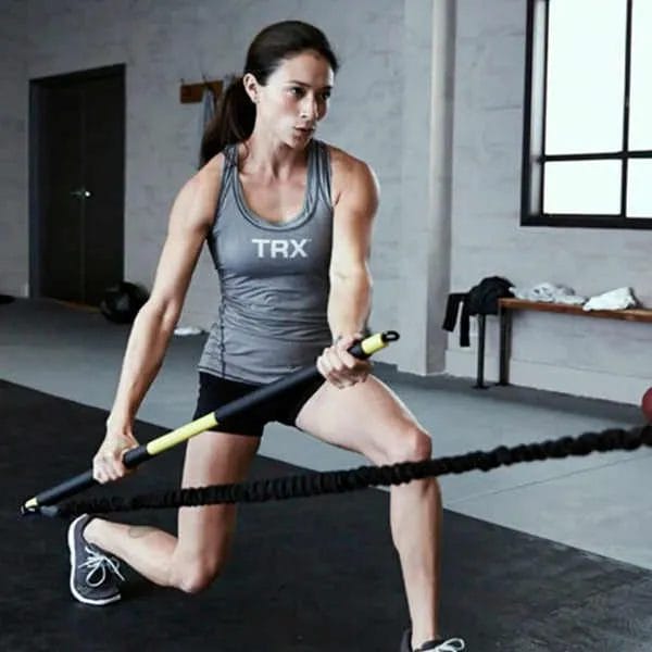 O TRX® Rip Trainer consiste numa barra de metal com um cabo de resistência elástico revestido que pode ser ligado a um ponto de ancoragem por uma ou ambas as extremidades.