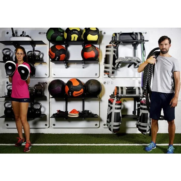 Além disso, os painéis Training Wall® dispõem de um sistema de ancoragem de libertação rápida no qual podem ser fixadas as diferentes ferramentas concebidas exclusivamente para o efeito. Com eles, pode ter um painel de formação que cubra todas as suas necessidades em "zero" metros quadrados. Isto permitir-lhe-á conceber espaços de utilização multidisciplinar, tais como salas de actividades dirigidas, centros de treino pessoal, clínicas de fisioterapia ou centros de reabilitação.