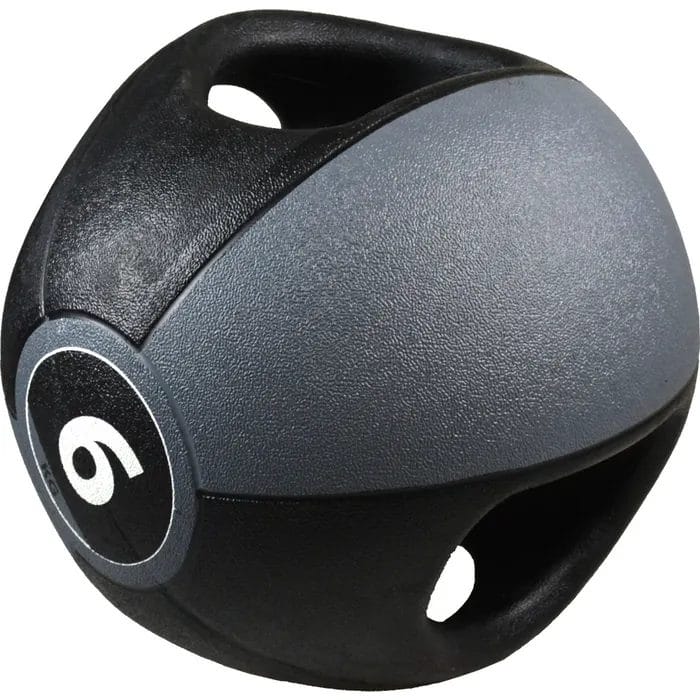 Balón medicinal con asas de 6Kg grande, pesado y sólido. Permite realizar una gran variedad de ejercicios.