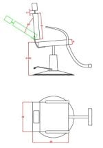 Sillón de maquillaje de diseño moderno y funcional con estructura cromada. Equipada con bomba hidráulica y sistema de bloqueo que permiten regular su altura y rotación. La inclinación del respaldo se regula hasta 40º mediante doble pistón de gas con palanca lateral.
