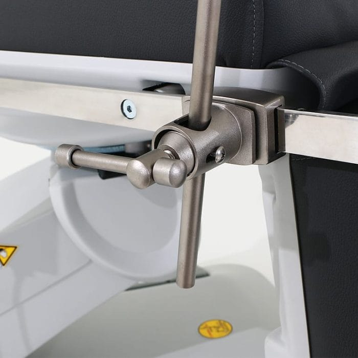 – Los pedales integrados permiten un total control de los movimientos desde cualquier punto de la camilla.
